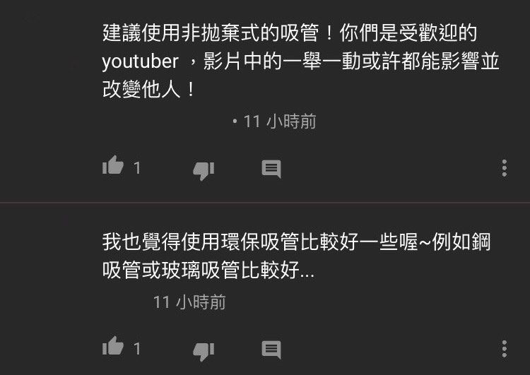 除了批評之外,也有網友點出「你們是受歡迎的youtuber,一舉一動都會影響他人。」在這個環保意識抬頭的時代,不管是普通人或是深具影響力的名人,都該好好珍惜這個美麗星球、環保不分你我他!
