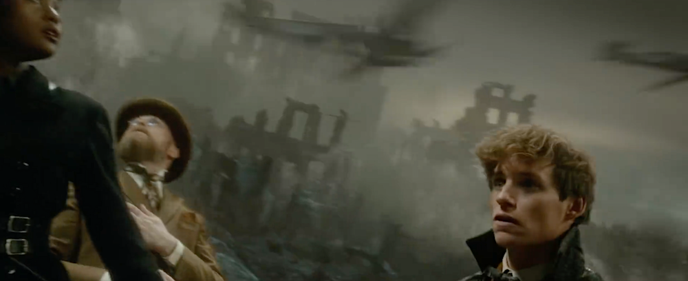 影迷們有沒有注意到《怪獸2》的終極預告中,出現了一幕紐特一行人被廢墟殘骸以及轟炸機包圍的畫面呢?由於《怪獸與牠們的產地》系列設定在 1926 至 1945 年間,在真實生活裡則歷經了納粹崛起、發動二戰接著垮台的歷史,因此當《怪獸與葛林戴華德的罪行》故事設定在巴黎,自然會出現二戰時期畫面。