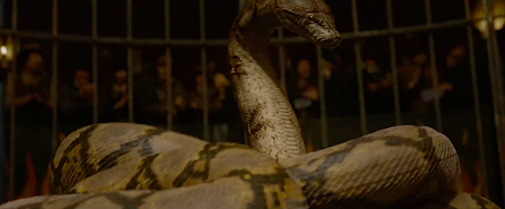 就在昨天,《怪獸2》的終極預告終於揭曉了血咒宿主的真實身份,原來她就是佛地魔的貼身心腹「巨蛇娜吉妮」!根據官方給出的介紹指出,血咒宿主與化獸師不同,無法選擇想轉換的動物形體,而宿主的血液本身就帶有詛咒,隨著年齡增長而擴散至全身、最後終身化為動物,也成了大家在《哈利波特》系列裡所見的佛地魔忠實夥伴。