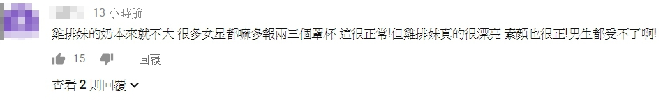 此影片一出爐,就有許多網友開始發表言論,有網友譏說:「所以只有B?」、「感覺奶奶好小。」「以前說自己是30E,拍這種影片不就自爆了!。」等有關於雞排妹罩杯言論,但也有許多網友給予雞排妹不同的讚美,例如:雞排妹很漂亮。不過也有人笑說這影片是拍給女生看的結果留言與觀看的大部分都是男生。