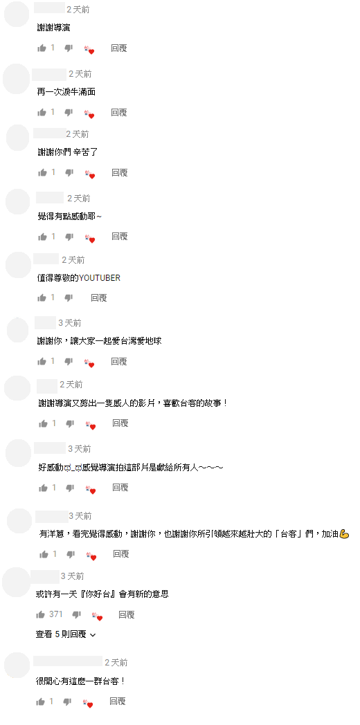 影片播出之後,便有許多網友紛紛留言:「或許有一天『你好台』會有新的意思」、「很開心有這麼一群台客!」、「台客真的是台灣少數有正面影響力的YouTuber !」、「看了這個影片實在太感動了」、「謝謝你讓台灣變得不一樣」、「看了好感動」、「好感動,感覺導演拍這部片是獻給所有人」、「再一次淚牛滿面」。