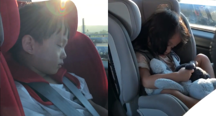 近期兩夫妻終於返回台灣和寶貝兒女們團聚,Tony昨(1)日在IG上分享自己偷拍全家人在車上熟睡的影片,自己則在一旁偷笑,只見Max和Lucy在安全座椅上睡得香甜,睡相超萌,但陪女兒坐在後座的隋棠睡到頭都歪了一邊,下巴也差點被擠出來,許多網友們看了笑翻,直說:「等你老婆起床就知道」、「應該會被揍」、「等辣媽看到這個短片,你就沒救啦!」但也有人大讚:「女神怎麼連睡覺都美」、「可愛的一家人」、「為什麼連睡覺都這麼美,這世界太不公平了。」