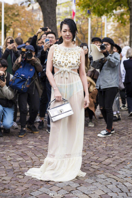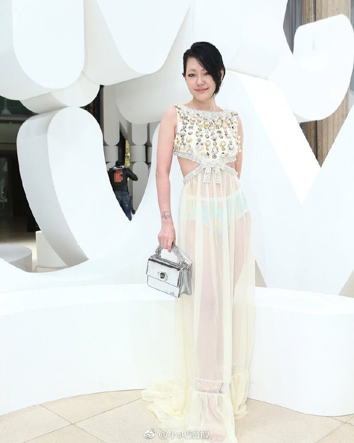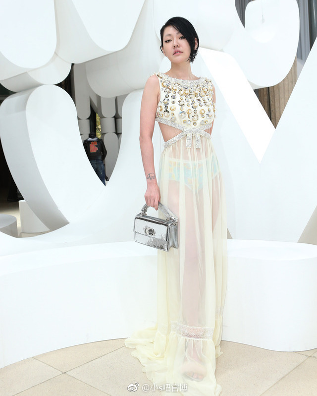 巴黎時裝週最後一場秀,小S可是祭出了她的「壓箱寶」,只見她身穿一襲中空透視白色薄紗,纖細水蛇腰、修長美腿一覽無遺,就連打底的可愛「花花三角褲」也被看光光,尺度遊走在危險邊緣,但上半身鑲滿了水晶,性感中又不失優雅。