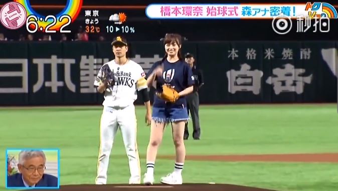 節目中也播出,橋本環奈開球當天身穿世界盃上衣,搭配牛仔短褲,不僅臉上充滿甜美笑容,開球姿勢也很標準。不過,卻被日本鄉民發現,投手丘上橋本環奈雙腿似乎有些臃腫,並驚呼「這個粗壯大腿怎麼回事」、「光看臉還是很可愛啦」。