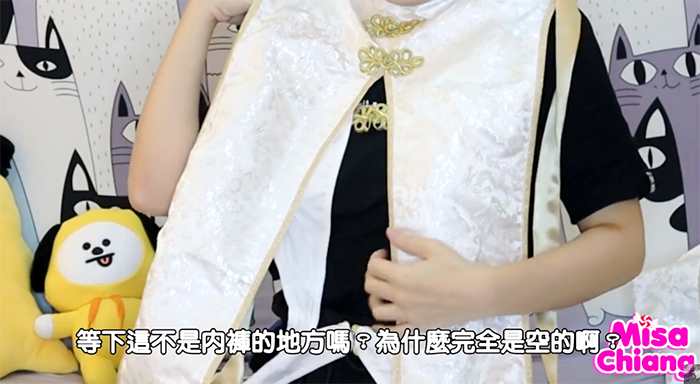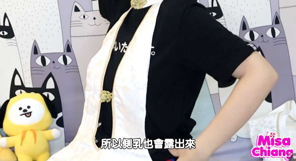 米砂2日上傳新影片大膽開箱「殺死處男旗袍」,更直說:「我手上拿的兩塊布就是殺死處男旗袍,對,就是兩塊布」,只見她手上拿的「旗袍」布料真的超級少,相當裸露。而米砂也實際套上幫大家解說,因為這件旗袍幾乎只遮住了重點部位,胸前更是深V幾乎開到肚臍!也讓米砂驚訝表示:「這是我穿的時候胸部會整個露出來的意思嗎?側乳也會露出來」。