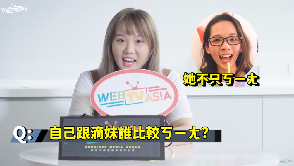 魚乾近日參加《WebTVAsiaTaiwan》的快問快答,起初她便回答了阿滴和展榮的二選一,更翻白眼直言:「阿滴,廢話,全民暖男,大表哥大舅舅」,對於阿滴相當有好感,不過有趣的是,在回答有關於滴妹的問題「自己跟滴妹誰比較ㄎㄧㄤ」時,她則回應:「滴妹不只ㄎㄧㄤ,她還有點笨」,搞笑損自己的好友,對於兄妹二人的態度超差多。