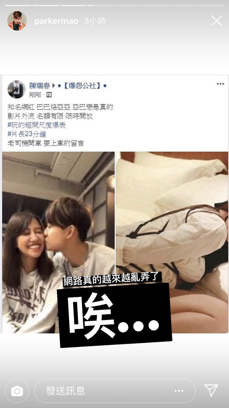 巴巴烙作為男方也在個人限時動態上發文,看得出來他字句間滿滿的無奈,同樣也發不止一篇限時動態,第一則:「網路真的越來越亂弄了,唉...」,第二則更是如此:「我想知道我是哪一支影片外流?誰可以傳連結給我看。」
