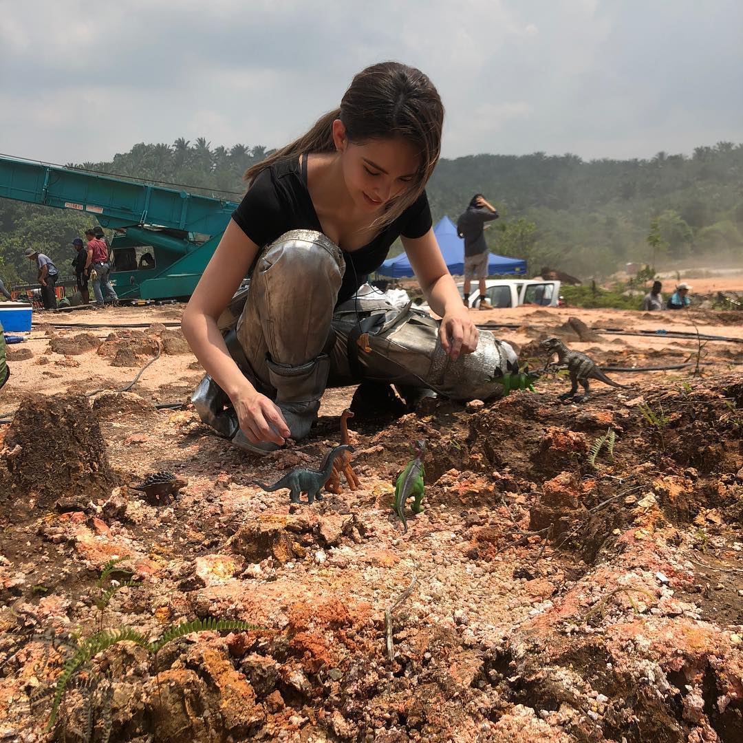 昆凌日前飛往海外工作,童心未泯的她,趁著拍戲空檔在泥土地上玩起恐龍模型,還開心PO出照片寫著:「我在等待場佈的時候,完成了另一部電影!」照片中看到,昆凌把各式各樣的恐龍模型擺在泥土地上,搭配一旁的雜草、枯枝,真的營造出《侏儸紀公園》的原始森林感。