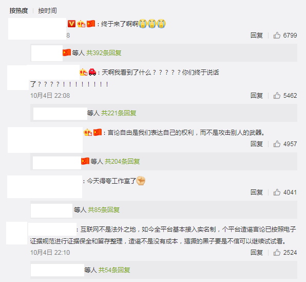 官方發布聲明後,粉絲紛紛於下方留言表示認同,誇讚終於等到鄧倫工作室的回應,並同時譴責造謠攻擊者最終難逃責任,也有粉絲表示「言論自由是我們表達自己的權利,而不是攻擊別人的武器」,盼今後網路上的惡意攻擊能減少,眾人共同維護網路上的和平。