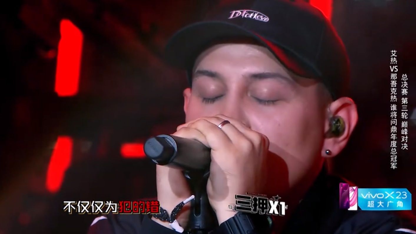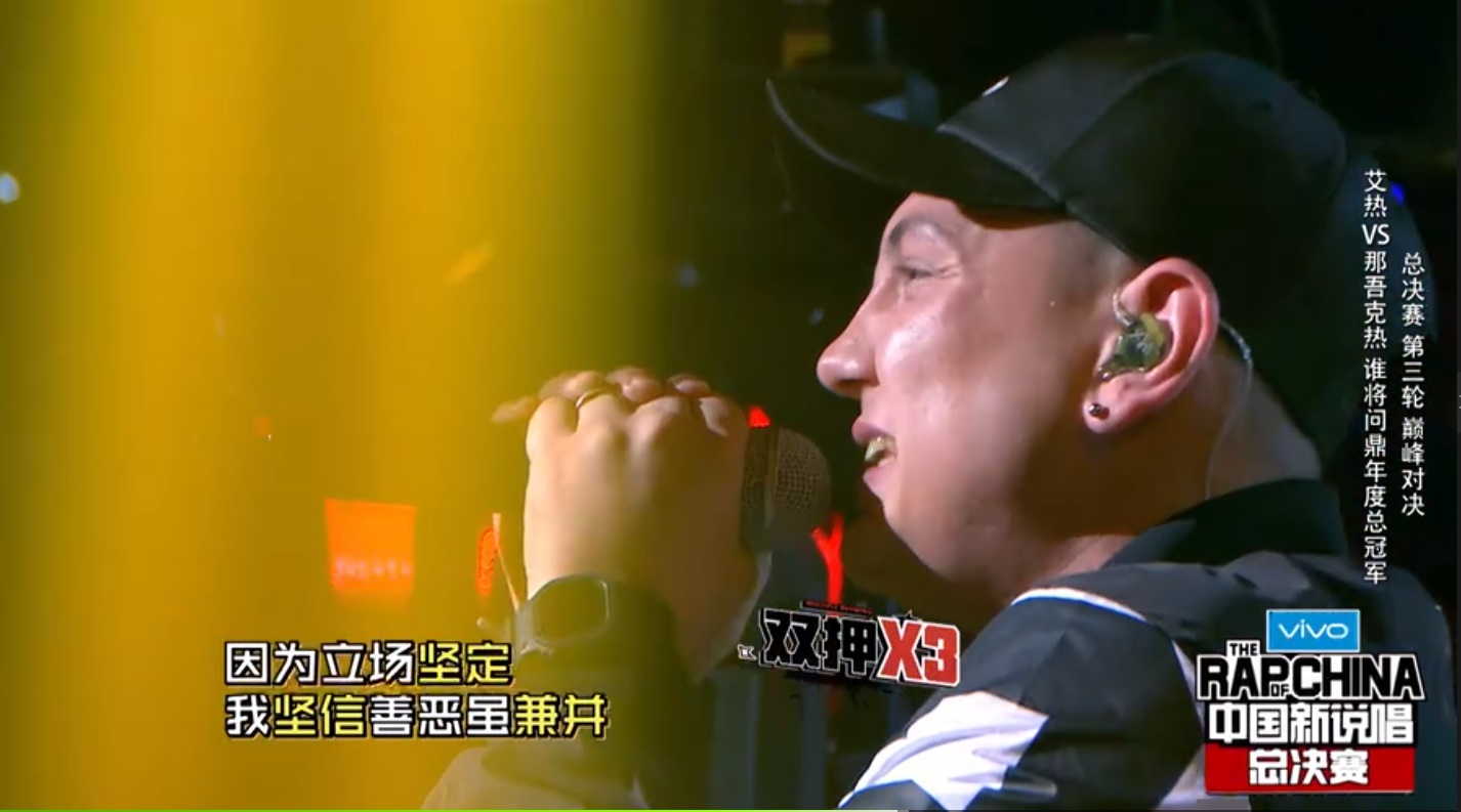 艾熱則感性的表示,自己在新疆最南邊的一個城市長大,從學習普通話到可以使用,可以說唱,真的跟電影一樣。而除了感謝製作人外,艾熱也相當趁機感謝父母,並指出他們一直以來都不了解說唱,而他就是「中國Hiphop」。