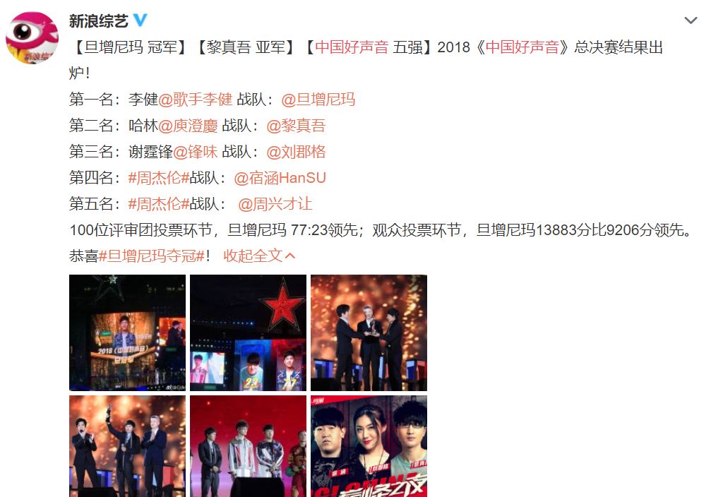 本季《中國好聲音》7日晚間迎來總決賽,進入決賽的選手包括旦增尼瑪、宿涵、黎真吾、劉郡格、周興才讓將在鳥巢帶來一場盛大的音樂盛宴。其中,今年冠軍呼聲最高的選手周杰倫戰隊「宿涵」在經過第一輪導師幫唱後,第二輪選手獨唱環節演唱「饕餮」和「以父之名」迎戰,再度展現快嘴rap,表演張力十足。
