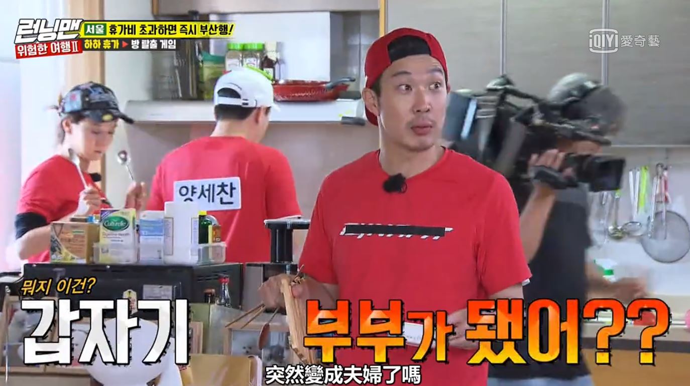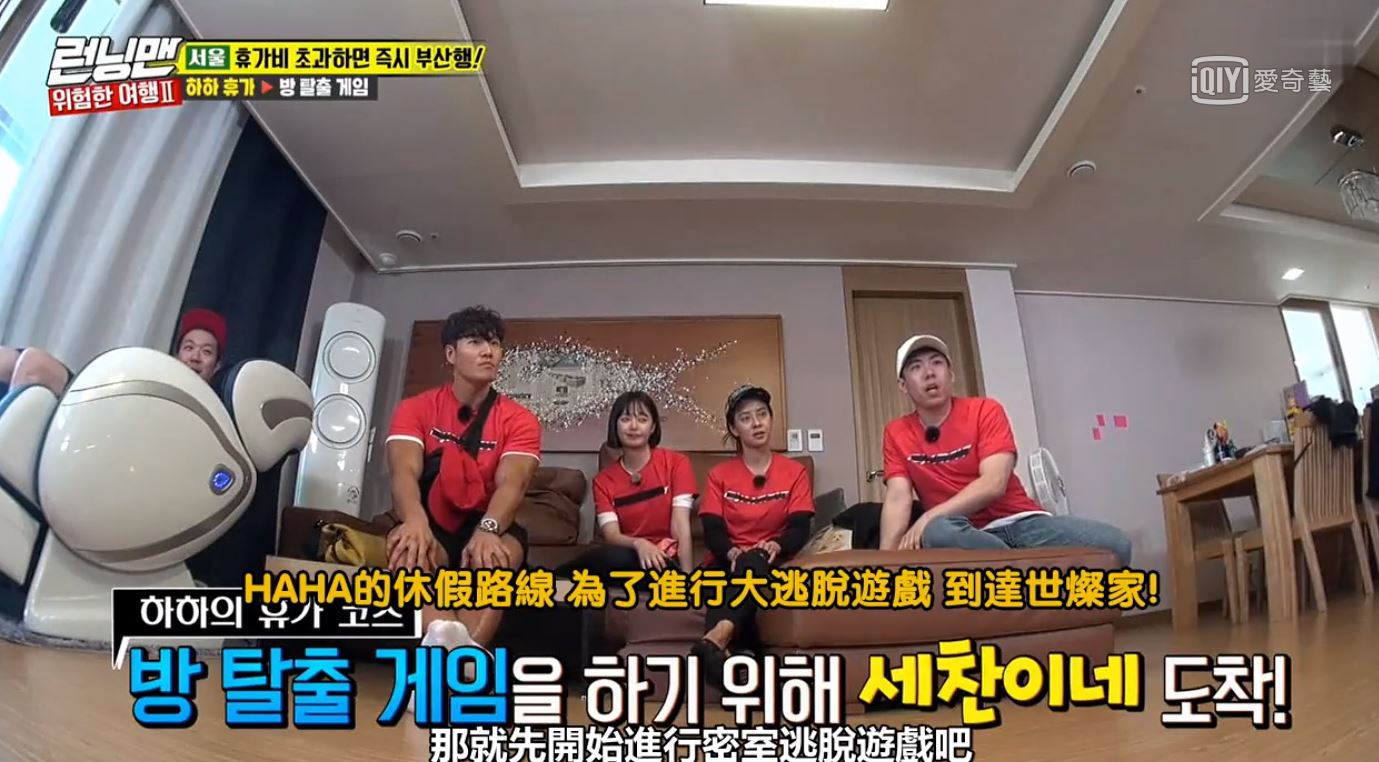 韓國綜藝真人秀《Running Man》最新一集中,闖關失敗的打工組和成功的休假組仍持續分頭進行活動。節目中,休假組各個成員都可以提出想去的地方,其中HAHA提起「密室逃脫」,一行人就聚集到了成員世燦首爾的家,不過全昭旻和金鐘國兩人卻演起了甜膩的夫婦短劇,讓成員都尷尬了。