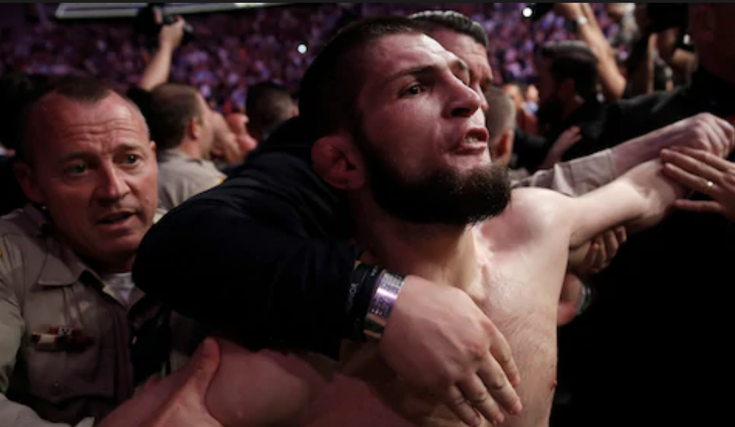 30 歲綜合格鬥選手、康納爾·麥格雷戈(Conor McGregor),備受矚目重返 UFC,挑戰從未有過敗績的現任冠軍俄羅斯選手「小鷹」卡哈比-努曼格莫多夫(Khabib Nurmagomedov),賽前記者會依舊垃圾話連連,這一次比賽再次吸引了大批粉絲觀戰,沒想到比賽結束時卡哈比受到台下康納爾·麥格雷戈隊友的垃圾話挑釁,衝下台去暴打引發全場粉絲譁然。