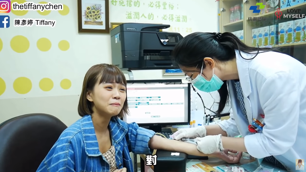 彥婷8日上傳新影片,影片中兩人來到桃園醫院做愛滋檢驗,到醫院之後,兩人首先做了線上風險評估,之後便開始抽血,不過因為彥婷相當害怕打針,巨人也在一旁幫她加油打氣:「不要看,吸氣,放鬆」,不過後來彥婷還是很害怕,抽血的過程都相當緊張,而巨人抽血則十分順利!