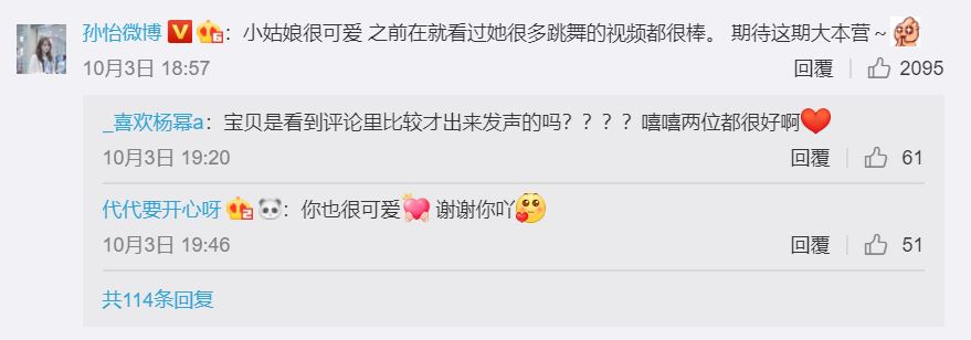 代古拉帶領孫怡一起完成「睫毛舞」充滿青春少女氣息,其中代古拉熟練的舞蹈和甜美笑容,更讓孫怡在微博上稱讚她「小姑娘很可愛,之前看過她很多跳舞的視頻,都很棒」。