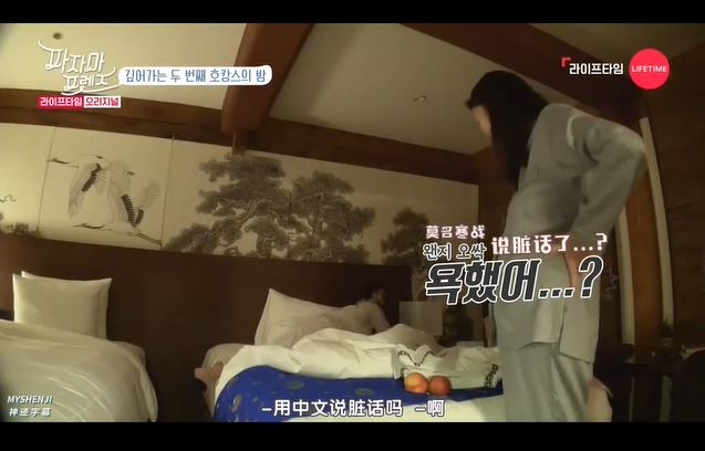 面對張允珠詢問程瀟說的中文,程瀟仍然繼續以中文回應,想表達智孝洗完澡會來叫醒她,甚至還把燈關掉。對此,張允珠以為程瀟起床氣大並說到「你是在用中文說髒話嗎」,面對仍然毫無反應的程瀟,張允珠體諒說到「你是太累了吧」。
