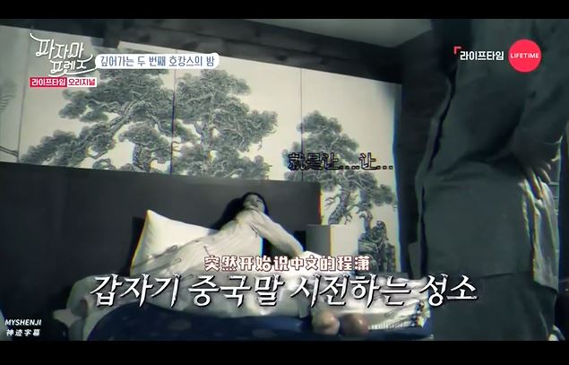 不敵睡意的程瀟還是躺回床上,張允珠進房後再叫醒程瀟去卸妝,程瀟這時雖然坐起來了,眼神卻十分呆滯看起來沒有把話聽進去,甚至開始不停重複用中文說到「我讓出來…叫我…叫我起來」,讓聽不懂中文的張允珠心裡滿是疑惑。