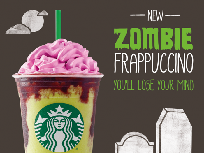 但除了日本跟韓國推出的萬聖節飲品之外,美國星巴克卻推出了不懷好意的商品...「殭屍星冰樂」?