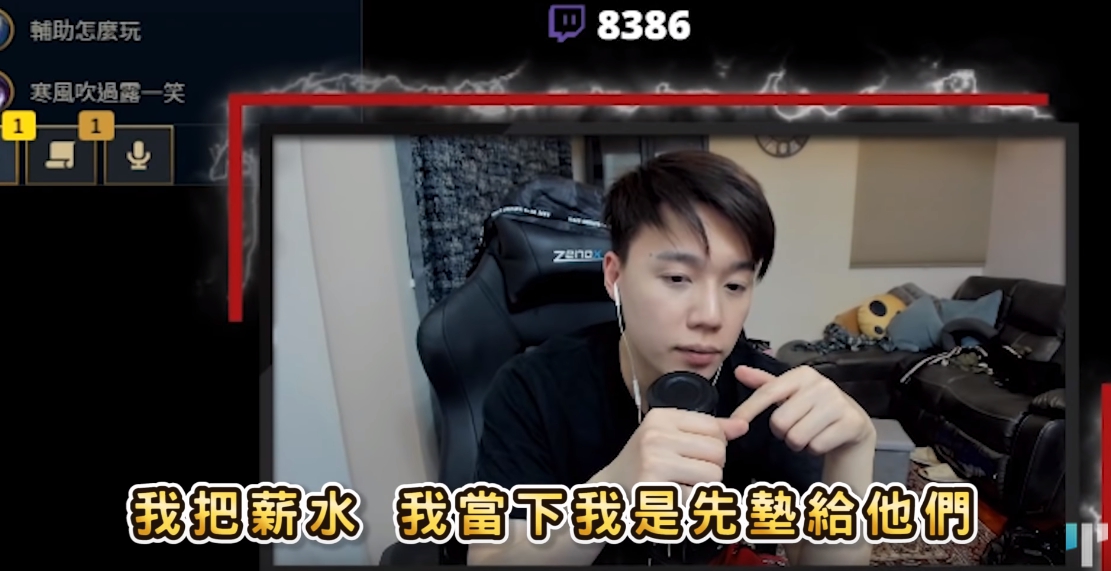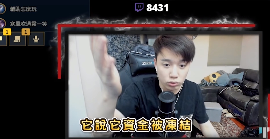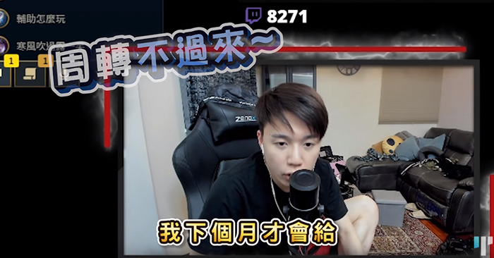 此事就這樣從一月發生後,直到了七月,椅子才發現公司內部發生的問題,那就是資金被凍結,而公司也打算撒手不管他們決定不投資電競戰隊了,當時椅子自己的存款也迅速噴光,他到處跟別人借錢,除了跟媽媽借,也跟朋友借,當時同樣是電競好手的丁特也義氣的借他30萬台幣他,椅子更在當時因為錢也和朋友鬧過不愉快,回想過去他也細數當初至少虧了將近八位數,也就是台幣千萬的天文數字。也讓當時的他快在電競圈混不下去,差點就要重操舊業改行做別的工作。