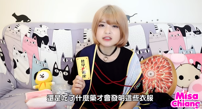 米砂13日上傳新影片,繼上次的處男殺旗袍之後,她又買了一件殭屍旗袍!有趣的是在開箱時,她拿出便驚呼「只有一塊布呢」,之後更搞笑表示自己要去賣布,「感覺賣這些布很賺錢耶」。除此之外她也拿出胸貼,原來殭屍旗袍因為側邊全開,根本無法穿內衣,只能用胸貼遮住重點部位,更讓她驚訝直呼:「如果是巨X的女生,直接胸部掉出來欸」。