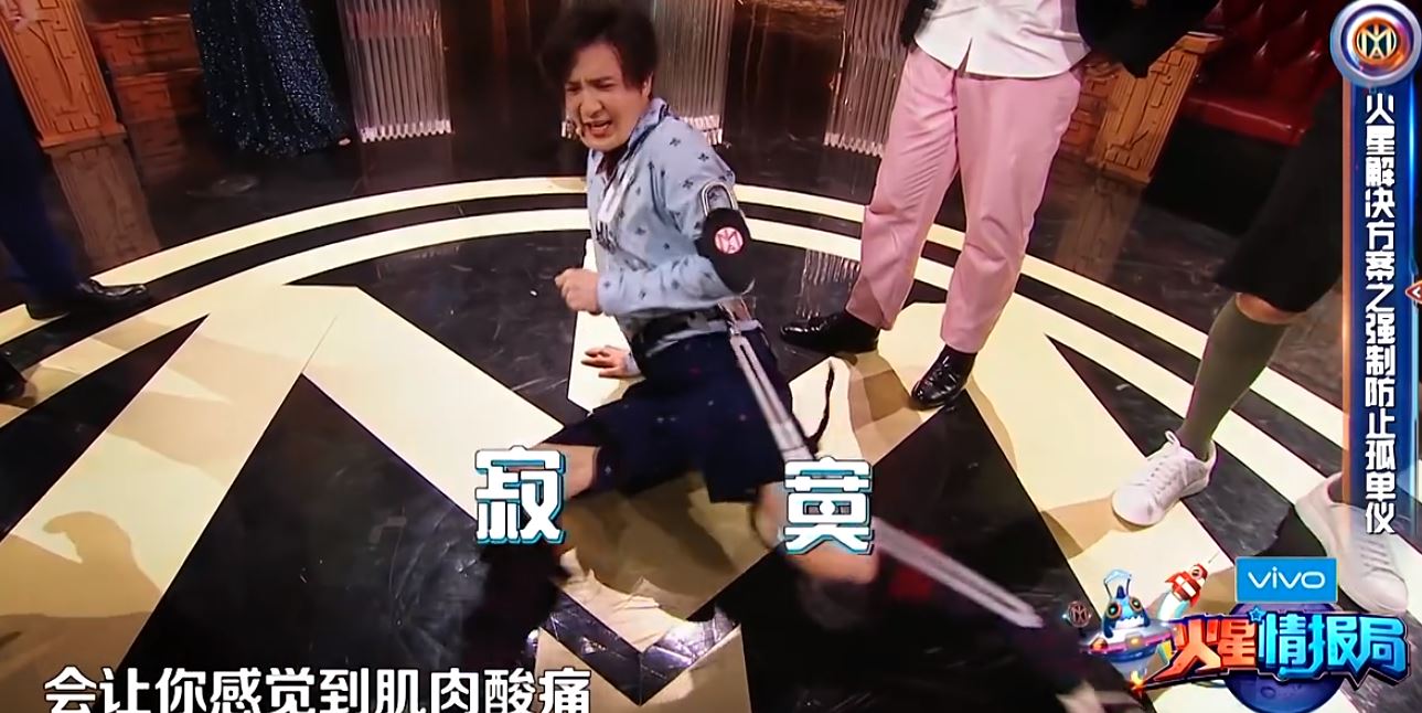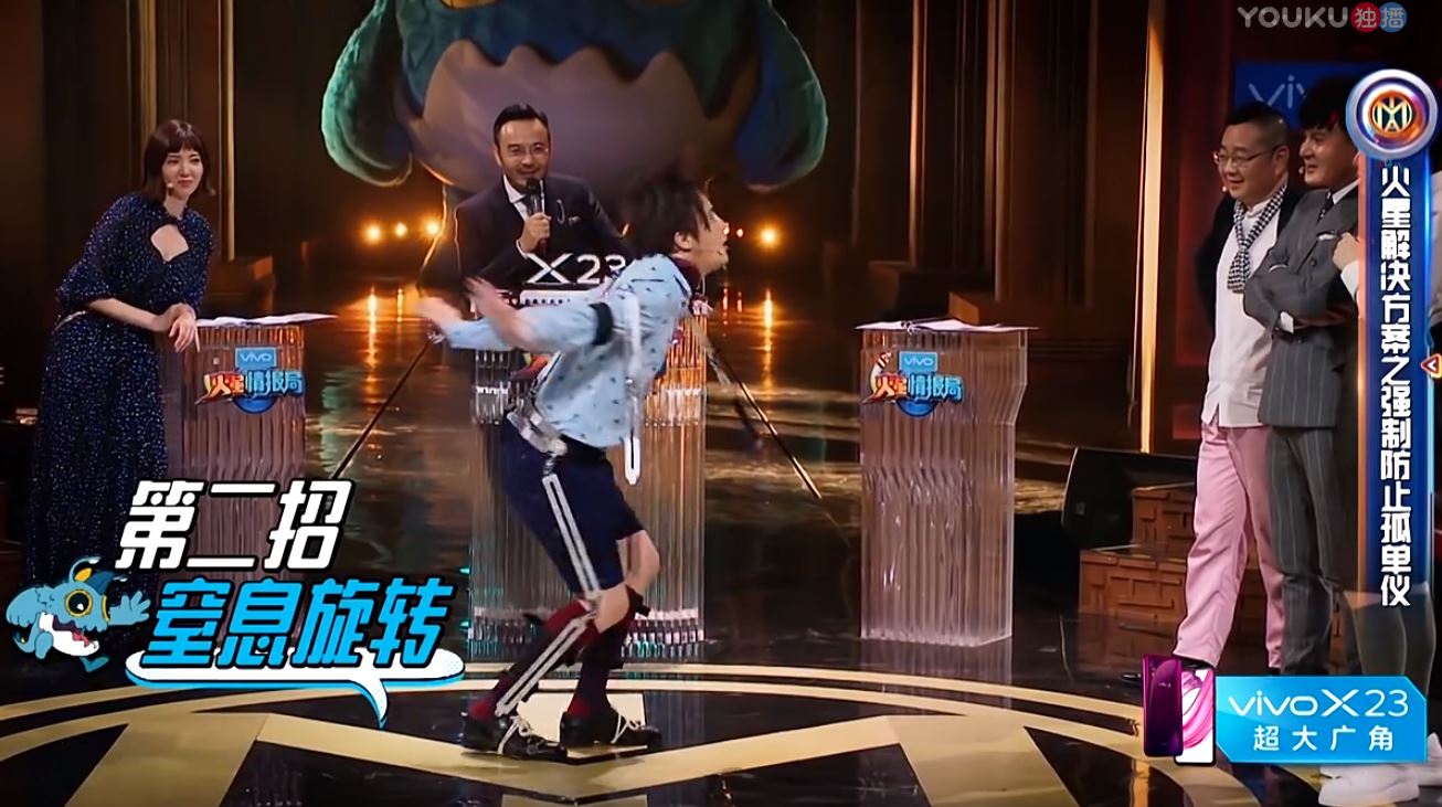 接著薛之謙用儀器示範3招房寂寞動作,包括寂寞劈叉、窒息旋轉、致命搖擺,甚至帶動現場來賓跟他一起動。薛之謙搭配背景音樂一下坐在地上雙腳重複開合,一下又原地轉圈前後甩頭,激烈動作讓他講話已經上氣不接下氣,一旁觀眾也笑到不行。