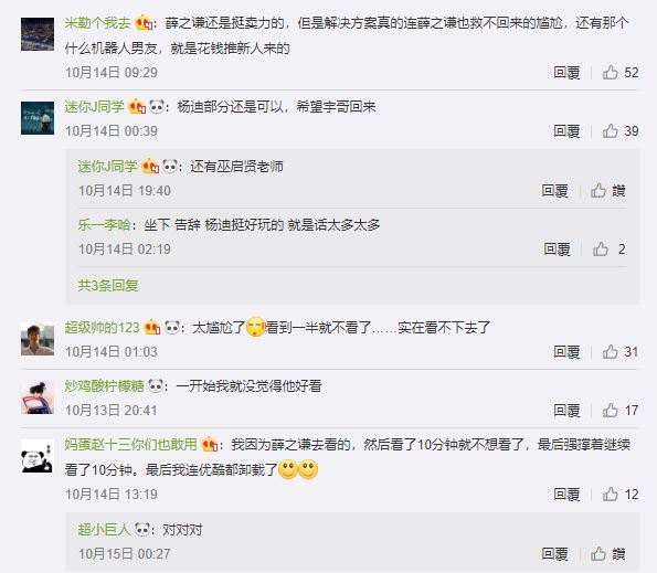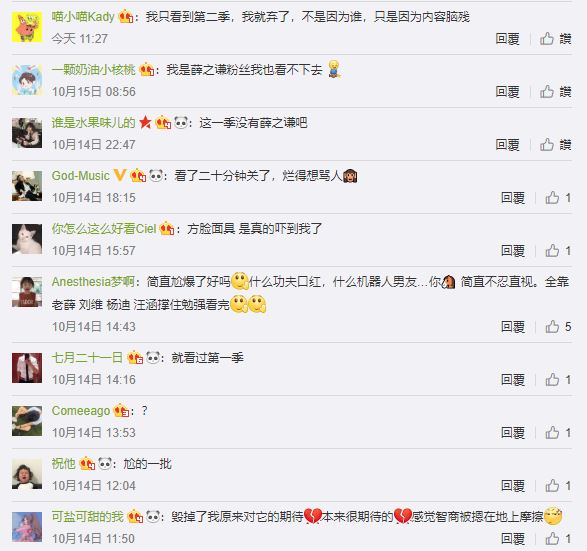 面對節目中所有來賓的賣力演出,大批網友似乎並不埋單,甚至認為節目內容未經考慮很空洞,並紛紛表示「毀掉我的期待,感覺智商被放在地上摩擦」、「我因為薛之謙看,但看了10分鐘就不想看」、「實在太尷尬了」。