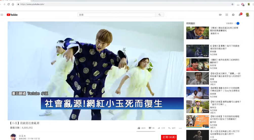 百萬網紅小玉今年因為大鬧綜藝節目《娛樂百分百》而備受爭議,而後他又因為超商影片被下架一事在鏡頭前痛哭,遭網質疑「假哭」,更引發退讚潮,受到網友高度反彈!不過小玉自之前上傳痛哭影片之後,便沒有再多做回應。近日他則推出新影片回嗆酸民,砲火猛烈。