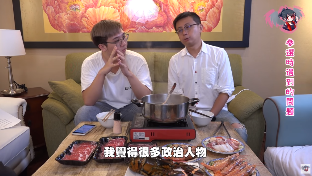 而提到「參選遇到的問題」,呱吉則表示:「我覺得很多政治人物,他們一樣都有經營粉專,他們也會拍攝vlog影片,其實這些政治人物呢,也都想當網紅,最後只是因為沒有成功」,表示這些政治人物因為自己在網上宣傳失敗,看見網紅想要參與政治,心裡便會有妒忌,之後他也接著說:「目前做得好的也只有一個人,就是柯文哲」。