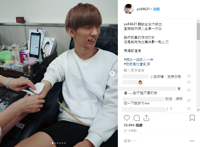 照片上傳之後,小玉在留言處打上:「第三張是我爆吐的樣子,我世紀型的怕打針」,許多粉絲也稱讚他:「小玉真的很棒」、「一個小舉動的影響 比想像中的還大」、「辛苦你了」、「有愛心的玉 棒棒噠」,不過仍有粉絲調侃「用到你的血會不會變很ㄎㄧㄤ」、「我覺得你的表情很假」、「直接就是一個想洗白」,引起高度討論。