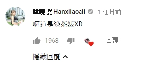 有趣的對比吸引眾多網友留言,而女神的飾演者網紅「韓曉噯」也逗趣的在下方自虧「啊這是綠茶婊XD」,其他網友也紛紛表示「影片裡所謂的“女神”是綠茶婊吧」、「其實我覺得女神應該改去綠茶婊」,更有網友指出「應該是公主病vs女漢子」,女神話題意外掀起討論。