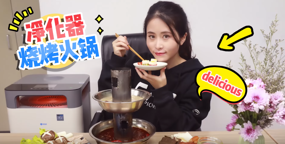 影片的開頭想先傳達的是現代的生活中充滿著許多空氣的汙染源,像是被迫吸二手菸,或是油漆等的強烈臭味,因此她拿出了她收到的空氣清新機,開始了她的瘋狂計畫,第一步她將同事用來噴漆的噴灌挖洞後加工,變成火鍋塔的支柱,並在罐內放入竹炭加熱,漂亮的火鍋塔便完成了,接下來正式開始放入高湯等火鍋食材放進鍋中熬煮,同時「吃的到兩種鍋底」就很厲害了,最狂的是她在最上層加上烤網,開啟了「烤牡蠣趴」。