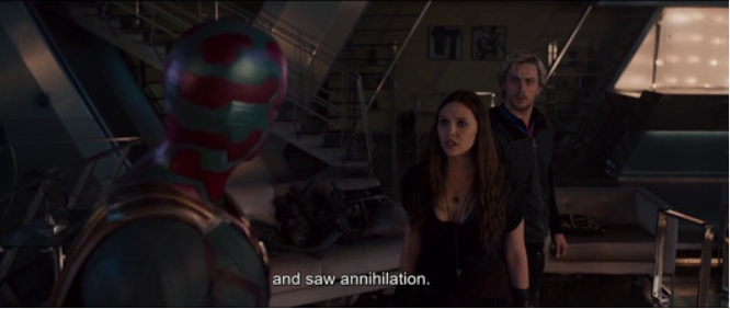 最近有網友指出在《復仇者聯盟2:奧創紀元》裡隱藏著疑似《復仇者聯盟4》的副標題,緋紅女巫在當時告訴擁有心靈寶石的幻視說:「我看著你的頭,看到了滅絕(Annihilation)。」貌似預知了心靈寶石未來會成為薩諾斯毀滅宇宙的最後一步。