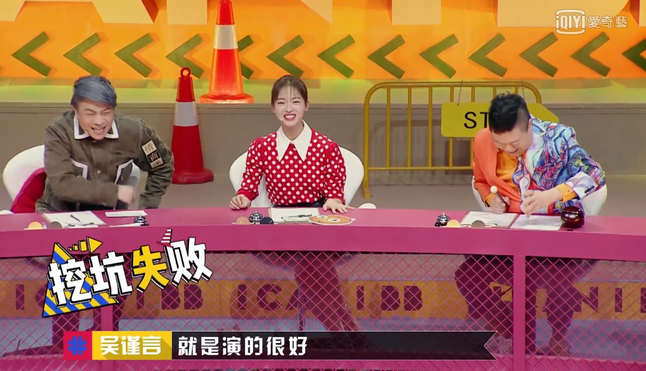 最後,馬東竟問到「如懿傳裡的周迅是誰」,接著緊追著問「那是他演的好還是你演的好」,吳謹言面臨節目組的有意安排完全不敢回答。這時蔡康永趕緊出面解圍,詢問吳謹言是否收看如懿傳,吳謹言則透露私下有在關注,蔡康永問及「看了以後的感想是」,吳謹言機靈表示「演得好」,馬東不放棄再問「那誰演得好」,吳謹言當下不假思索就誇讚周迅演得最好,馬東也表示認同,絲毫不敢動搖周迅「三金影后」的地位。