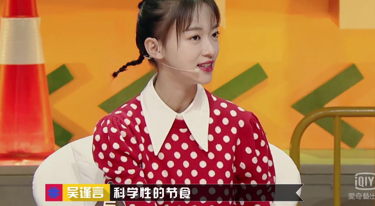 對此,吳謹言透露從10歲開始,她就嚴格執行「科學性節食」,這是因為出身芭蕾的緣故。節目中,吳謹言也進一步解釋她的飲食觀念,並說到「吃的東西克量多輕多重」、「什麼以後吃了胖現在不胖,現在吃了胖以後不會胖」不過她也表示「已經習慣了」,而現場來賓則認為太痛苦了。