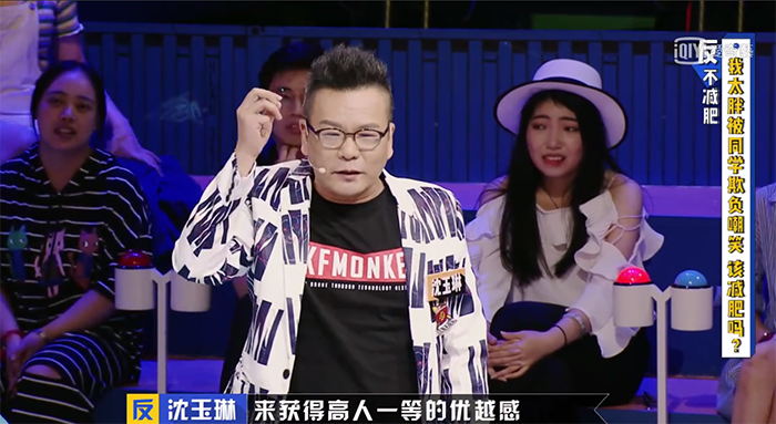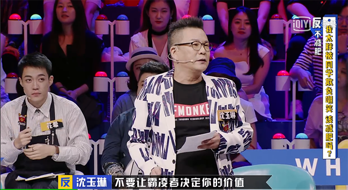 大陸綜藝節目《奇葩說》針對「因為身材被取笑、霸凌,該減肥嗎?」這個主題進行辯論,過程依舊相當激烈。而沈玉琳代表反對方出陣,但他在台上的言論讓台下的來賓全笑成一遍,甚至稱減肥是「愧對祖宗」,不愧他「荒謬大師」的封號。