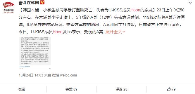 24日,U-KISS成員Hoon在事情水落石出前,出面以長文清楚指明,韓國全羅南道木浦西海小學裡昏迷的五年級生,就是他的親戚。文中首先指出,他的姪子被同學無緣無故爆打,目前人就躺在醫院裡腦死且意識尚未恢復,他也難過表示「這孩子如果恢復意識的話,精神年齡只能達到3~4歲的程度..」。