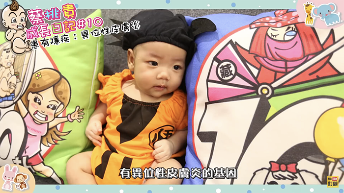 25日蔡阿嘎上傳了第十集的⟪蔡桃貴成長日記⟫,影片中提到蔡桃貴患有不為人知的「隱疾」,他有異味性皮膚炎的基因存在,只是不知道什麼時候會被誘發出來,照顧蔡桃貴時也要特別注意不能夠給他穿衣服,因為他的體質非常的熱,容易長出疹子,蔡阿嘎也笑稱:「所以我們家裡冷氣都開22度哦~」