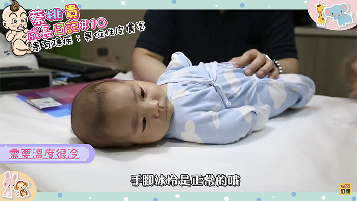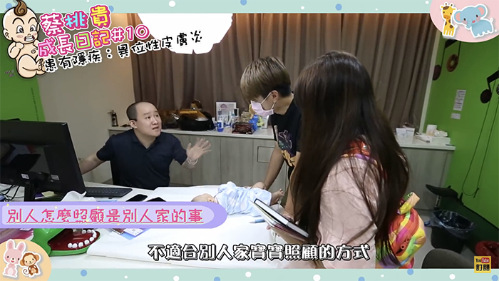蔡阿嘎和老婆二伯也有特地去請教醫生,關於如何照顧異味性皮膚炎的小朋友,醫生也表示蔡桃貴需要的溫度比一般小孩更冷,像北極熊一樣,若是他手腳冰冷也是非常正常的事情!另外,像是一天要幫他擦4-5次乳液,讓他可以增加人工保護層,皮膚就比較不會受到刺激而誘發發病,醫生也提到最重要的是:「你們家的寶寶不適合別人家的照顧方式!」要好好照顧蔡桃貴才能夠降低他異味性皮膚炎的發病機率。