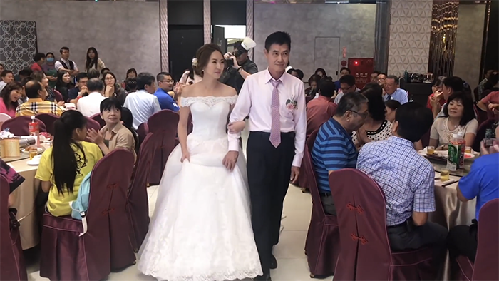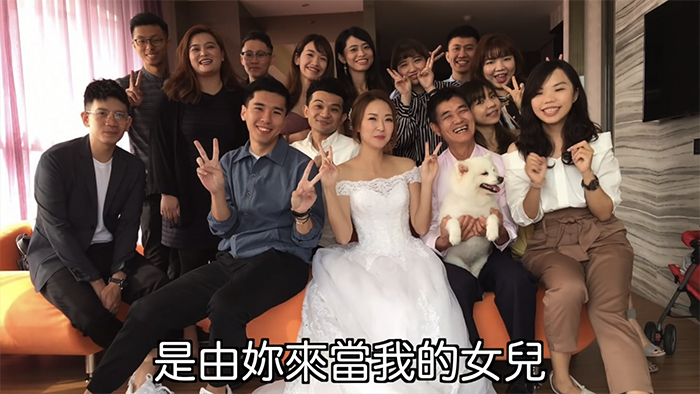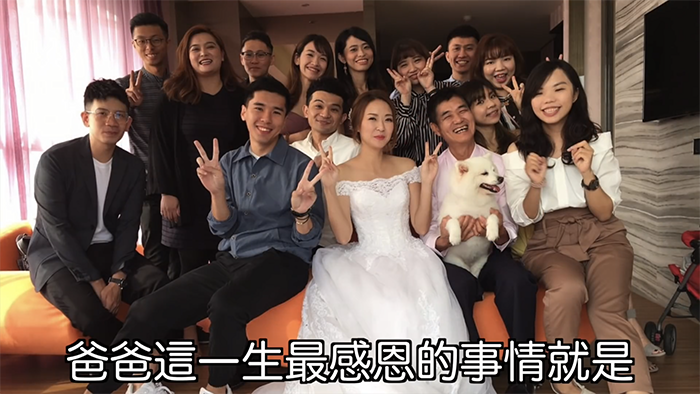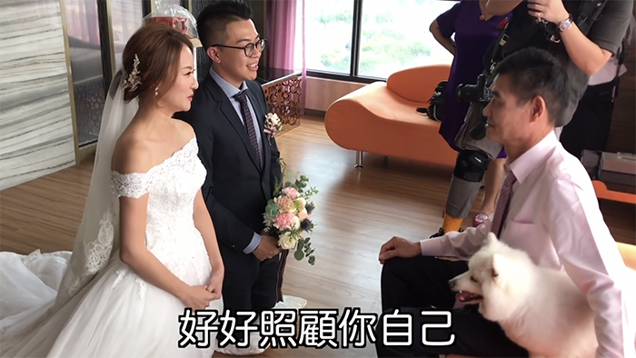 影片最後老人牽著新娘的手進入結婚典禮現場,而他也在影片中打了一段要給女兒的話:「想回家永遠可以回來,你永遠是爸爸心中的寶貝」、「記得常常回來跟爸爸吃飯,爸爸會準備你喜歡吃的菜」、「爸爸這一生最感恩的就是由你來當我的女兒」,老人非常真情流露的文字,感動許多觀眾。