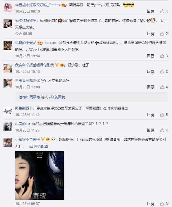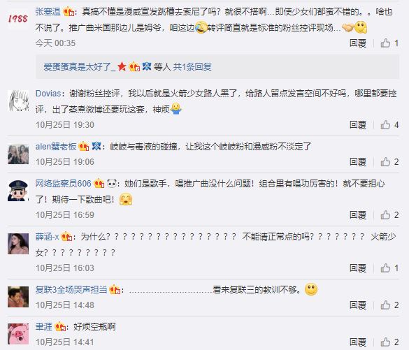 索尼影業官方微博一分享火箭女配唱推廣取信息,也意外引起火箭少女和漫威粉絲兩方論戰。對於火箭少女粉絲不斷捧自家偶像並表示期待歌曲,漫威迷則不解索尼影業像火箭少女邀歌,並說到「推廣曲美國那邊是姆爺,咱這邊就是標準的粉絲控評現場」、「我以後就是火箭少女路人黑了」。