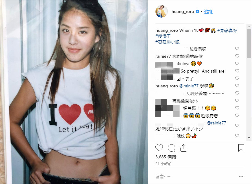 女星黃小柔以女子團體4 in Love出道,後來朝戲劇、主持方面發展。2014年黃小柔嫁給了老公王睿,婚後育有2子1女。生完小孩後,黃小柔一直有持續在進行減肥計畫,昨(28)日他PO出18歲時的舊照,連他都忍不住感嘆:「瘦慘了!看看那小腹!」對比19年後的今天,網友們全看傻,甚至連好友楊丞琳都來留言。