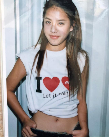 身為3個孩子的媽,為了方便照顧孩子,已經維持多年短髮造型,不過照片中看到,18歲的黃小柔留著及腰的長髮,長瀏海隨興的往後撥,露出清秀瘦長的瓜子臉,兩眼炯炯有神,且皮膚相當透亮。這是黃小柔在「4 in Love」時期的照片,她身穿著一件純白色的字母T恤,微微捲起袖子、綁起衣角,還帶著一個大大的誇張圓形耳環,渾身散發著美式風格。18歲的她無論四肢、小腹都相當結實,隱隱約約還能看出肌肉線條,也能看出她滿滿的自信。