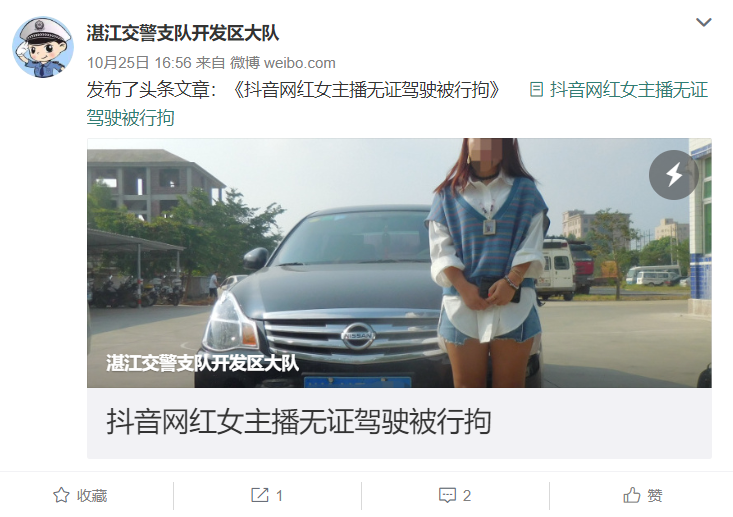 大陸抖音網紅「廣西小可愛」無照駕駛,被捕稱「我那麼可愛,你捨得嗎?」員警傻眼