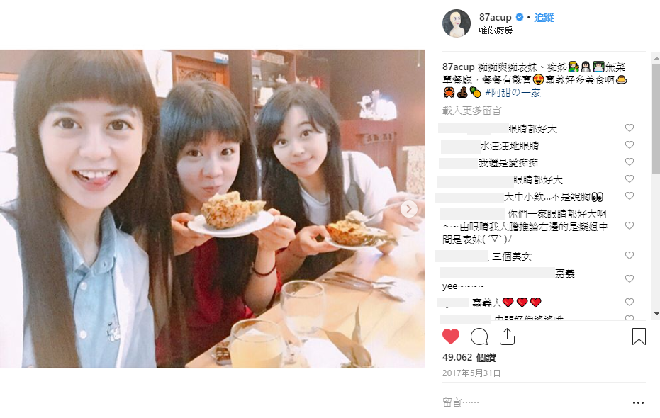 其實去年5月痴痴便曾PO出和痴姐及表妹的合照,當時三人的高顏值便引起高度討論,這次痴痴和姐姐一起參加員工旅遊,也再次引起話題。