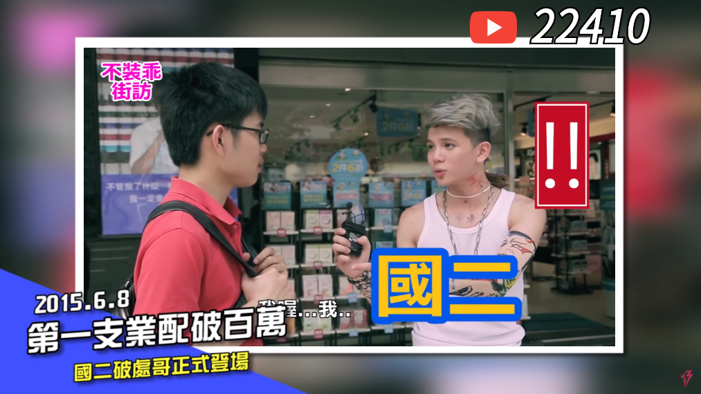 後來他們也放上第一支業配破百萬的里程碑,值得注意的是,該支影片中,正好是培根的初次登場!只見當時孫生詢問:「你對謝和弦在高一破處有什麼看法」,培根則回答:「太早了」,接著孫生再次詢問:「那你呢,你幾歲破處」,培根便直說:「國二」,讓孫生直接傻眼,笑翻粉絲,有趣的腳本設計也讓培根從此冠上「國二破處哥」的頭銜。