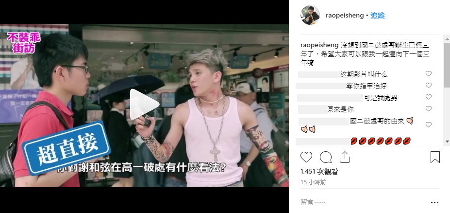 事實上許多粉絲都常常透過反骨的影片看到培根,卻不知道「國二破處哥」這個稱號的由來,這次反骨PO出回顧影片才讓許多粉絲恍然大悟,而後來培根也在自己的IG中放上影片,網友則紛紛留言︰「原來是你」、「國二破處哥的由來」。