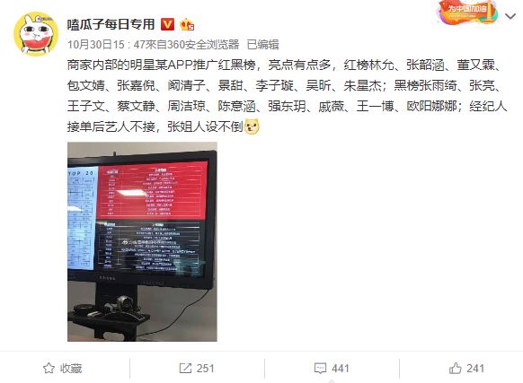 大陸小紅書在近五年已經有超越1億的用戶,也已經深入大陸娛樂圈觸角,成為藝人和粉絲貼近互動的平台,近期也流傳著這些明星的代言評價。榜單中分成黑榜和紅榜,其中黑榜代表黑名單,而紅榜代表值得合作的藝人,各列10位明星。