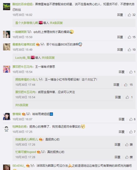 對此,不少網友認為榜單名單很符合大眾評價,當然也有部分網友認為沒有參考價值,但也有人為黑榜藝人說話,並表示「黑榜裡有些不願意配合的明星,說不定是有良心的人,知道貨不好,不願意坑自己粉絲」。