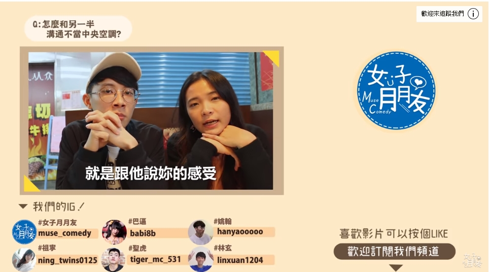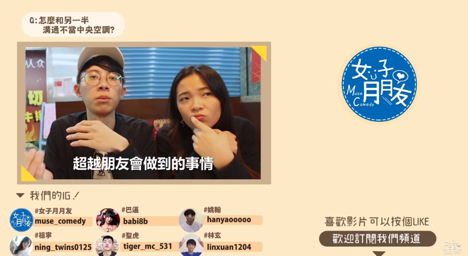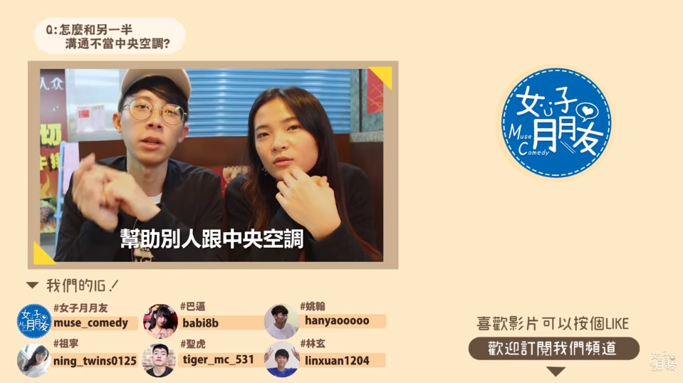 故事結束後,飾演男主角的網紅林玄也分析,有些人的確很喜歡幫助別人,但是幫助別人跟中央空調最大的差異在於,他會不會做超越朋友會做到的事情,像短片中男主角的行為會讓女主角覺得她與其他人地位沒有不一樣。飾演女主角的祖寧也表示,情侶之間的溝通應該是告訴對方自己的感受,而不是要求對方應該要怎麼做。