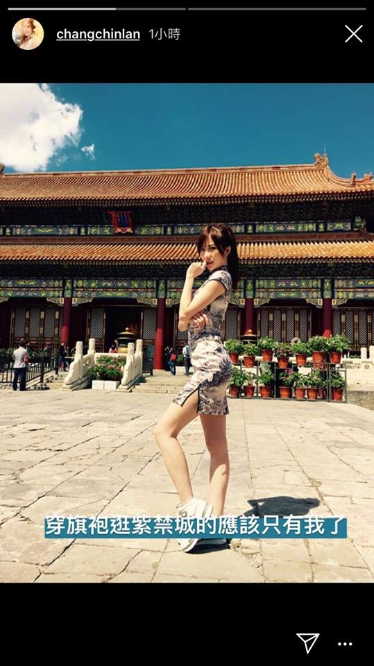 張景嵐更在照片中逗趣寫著:「穿旗袍逛紫禁城的應該只有我了」、「大家好 我是藍格格 你們可以叫我格格blue」性感的辣腿翹臀配上俏皮的文字實在是太可愛啦~
